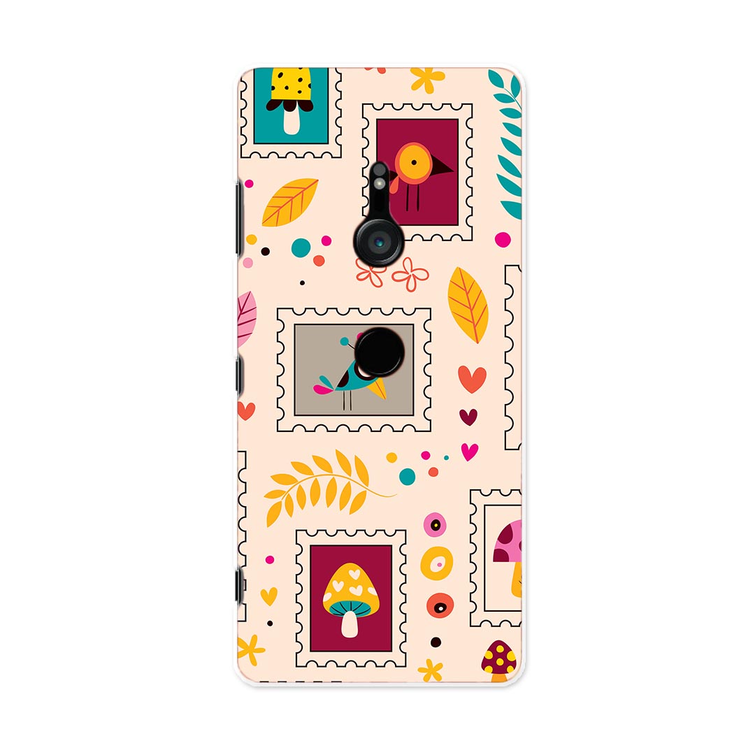 SOV39 Xperia XZ3 エクスペリア エックスゼットスリー sov39 au エーユー スマホ カバー ケース スマホケース スマホカバー PC ハードケース 008271 切手 鳥 カラフル 模様