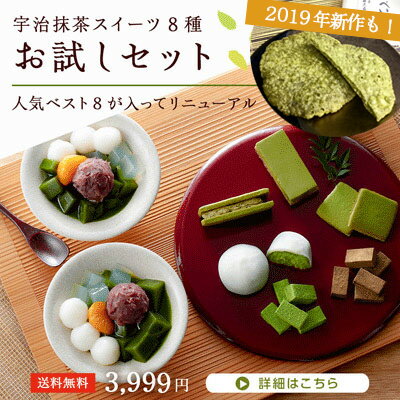 抹茶あんみつ・抹茶だいふく・抹茶生チョコレート・ほうじ茶生チョコレート・抹茶バターサンド・抹茶チーズケーキスティック・抹茶ラングドシャ・抹茶塩のえび天せんべいを、お得な初回限定価格で。